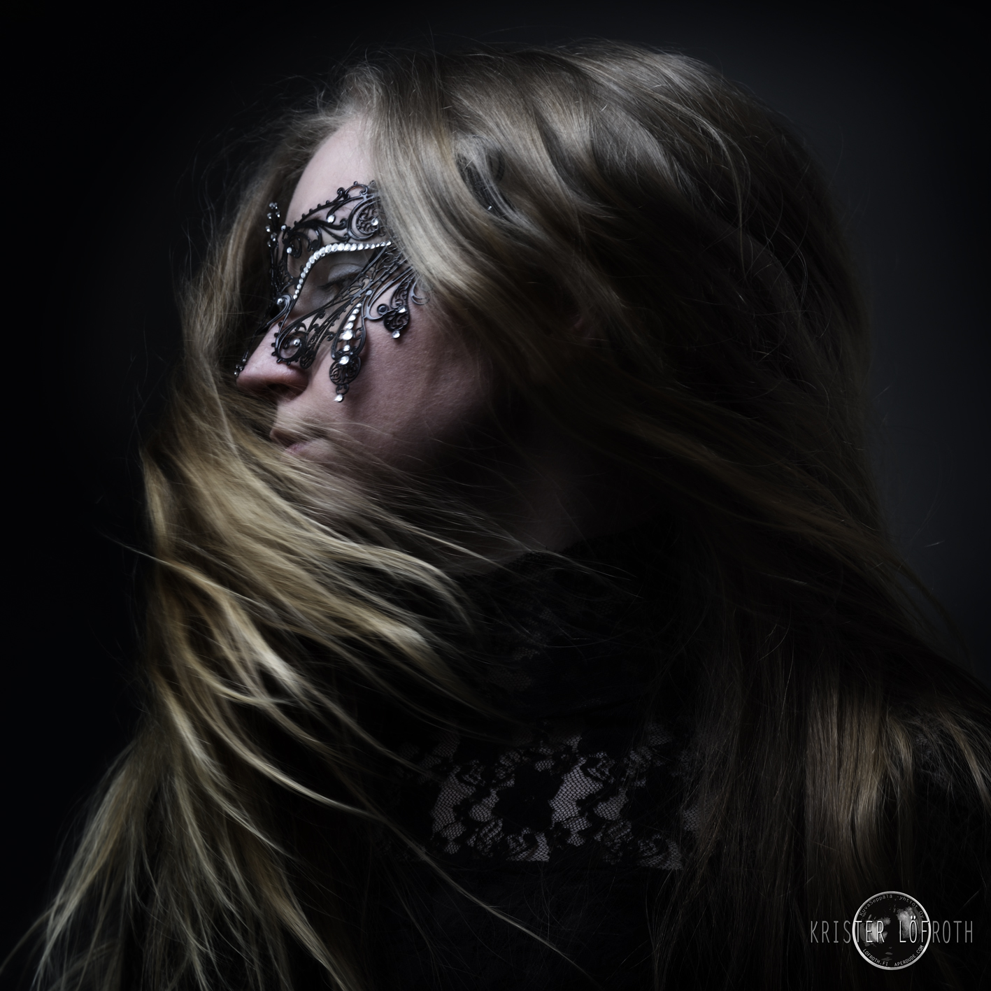 Mitja hankki Venetsian matkaltamme huomenlahjakuvia varten naamion ja sehän piti tietenkin testata. Musta metallinen siro naamio toimi loistavasti pitsin kanssa.
