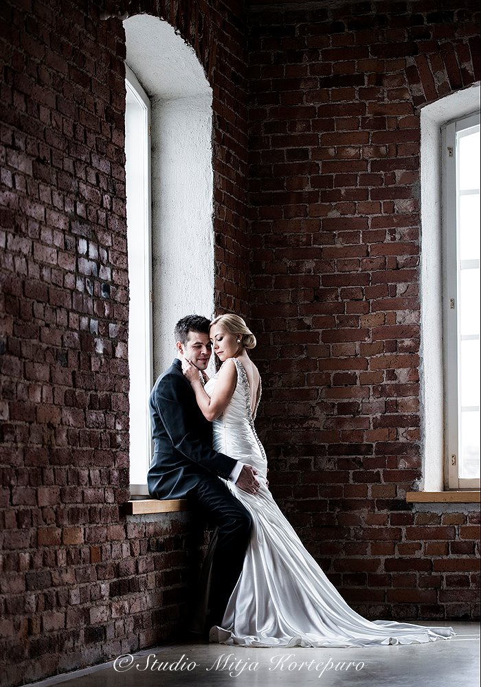 Yhä edelleenkin kuvan katsojalle välittyvä tunnelma on se kuvan tärkein voima. Näissä kaikissa kolmessa kuvassa on hieman eri tavoin kuin Johannan kuvissa toteutettua yksinkertaistamista. Itse olen aina viisastellut kuvan rakentamisprosessin menevän niin, että ensin on musta tyhjä tila, johon tuodaan ihminen/ihmisiä. Sen jälkeen mitään väriä/muotoa/struktuuria tai muuta elementtiä ei saa kuvaan tuoda, JOS SE EI PARANNA KUVAA. Esim tässä yläpuolella olevan hääkuvan alan jako 1/3 vihreää ja 2/3 sinistä ja parin sijoittaminen kultaiseen leikkaukseen on kauniin klassinen ja toimiva asettelu. Tai alla olevan kuvan pehmeät materiaalit ja hiuksen hieno vaaleiden sävyjen leikki yhdistettynä hellyttävään olemukseen on todellakin yksinkertaista ja toimivaa. Mitjan sivuilla pääset tästä
